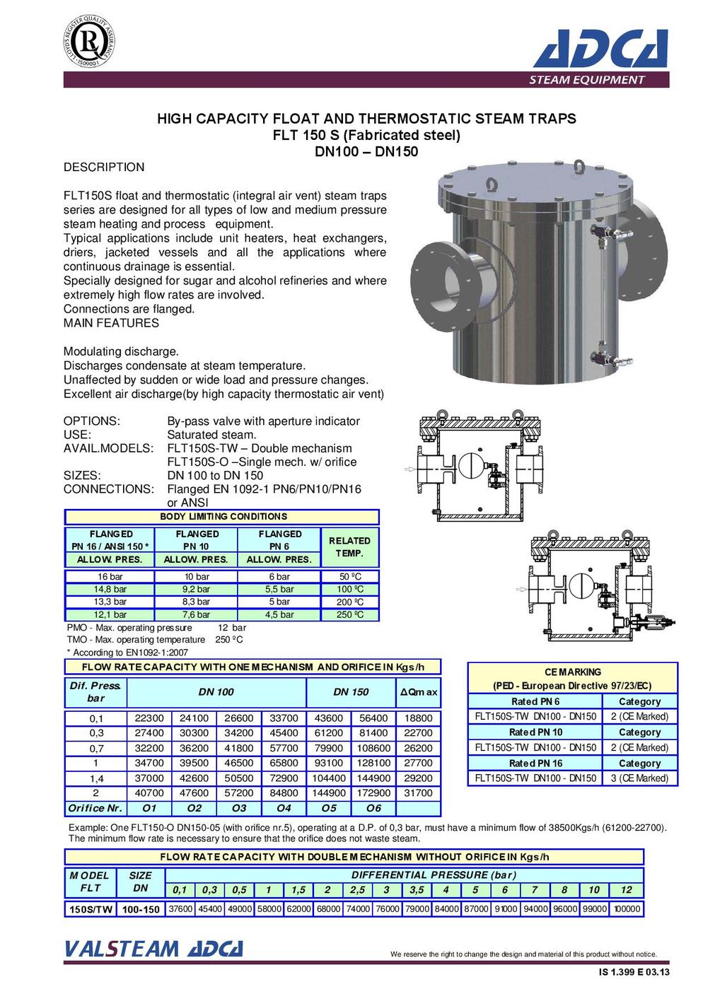 HIGH CAPACITY FLOAT AND THERMOSTATIC STEAM TRAPS (DN100 – DN150)